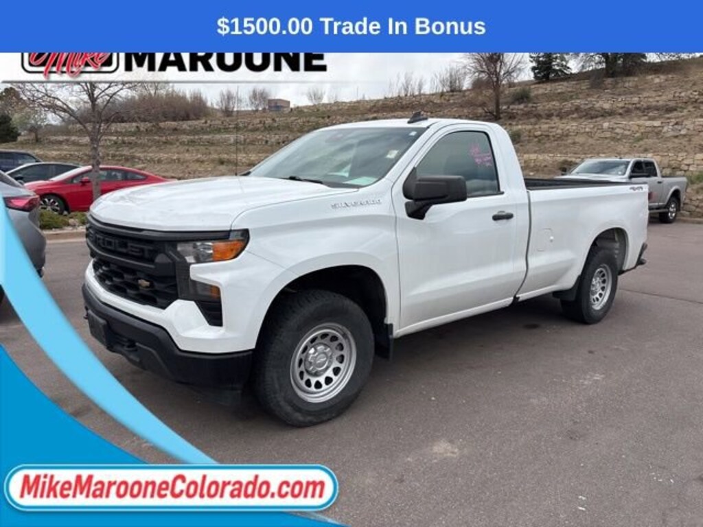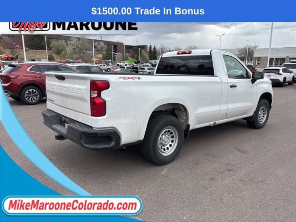 This Silverado 1500 comes with the FULL Mike Maroone a 60-Day 3000 Mileage Powertrain Warranty. We will review our technician’s vehicle inspection report with you before purchase. Our intention is to provide you a completely transparent buying experience. At Mike Maroone our used vehicles are Safety Checked, Warrantied, CarFax, and if you don’t like it ... Bring it back! For more information or vehicles like it, stop by Mike Maroone North today. We are just north of the Chapel Hills mall behind Walmart in the Chapel Hills Auto Mall.