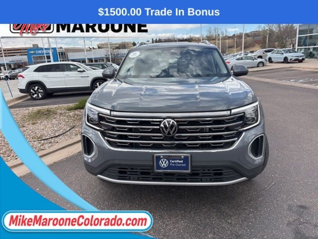 This Atlas also comes with the FULL Mike Maroone a 60-Day 3000 Mileage Powertrain Warranty. We will review the technicianâs vehicle inspection report with you before purchase. Our intention is to provide you a completely transparent buying experiance. At Mike Maroone our used vehicles are Safety Checked, Warrantied, CarFax, and if you donât like it ... Bring it back! For more information or vehicles like it, stop by Mike Maroone North today. We are just north of the Chapel Hills mall behind Walmart in the Chapel Hills Auto Mall.